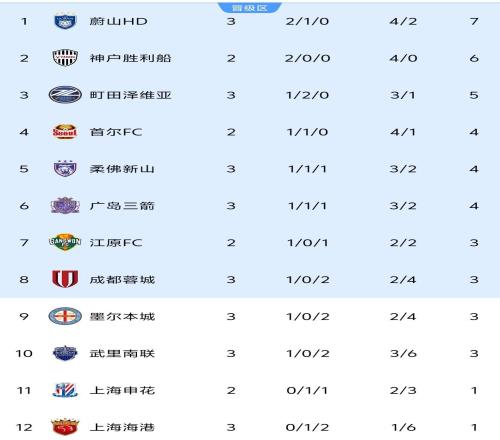 亚冠精英赛最新积分榜:中超2队均输球,上港垫底,2队3轮不败