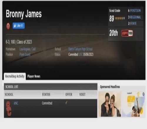 布朗尼就更不用说了,因为父亲詹姆斯的缘故,他从一出生就活在聚光灯下,他的高中比赛甚至进行收费全美直播,高中毕业被ESPN综合评分89分四星高中生,在2023届全美得分后卫中排名第6,全美排名第一的是评分94分五星高中生以赛亚-科利尔,全美百大高中生中排名第22位,布朗尼收到了包括杜克、堪萨斯、孟菲斯、北卡、UCLA等NCAA 顶级名校的招募,他最终选择加盟南加州大学,加入球队后他也是担任第六人替补角色,总计出战25场比赛,场均出场19.4分钟。