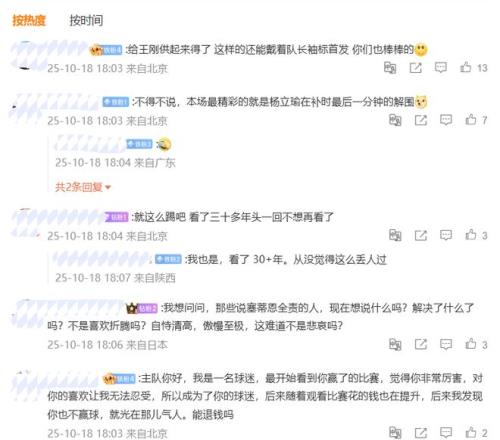 雷速体育10月18报道 在刚刚结束的中超第27轮比赛中,北京国安客场1-2不敌深圳新鹏城,国安球迷赛后难掩怒火,再次“攻陷”了俱乐部官方微博的评论区。