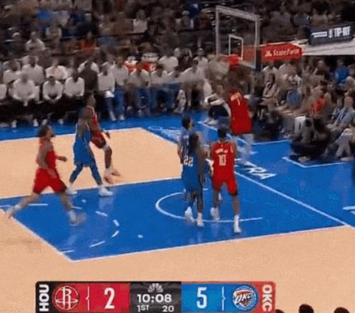 第三节,杜兰特进攻势头有所下滑,仅打进一个运动战进球。末节,火箭和雷霆互不相让,场面十分激动人心,关键时刻亚历山大在阿门头上急停跳投打进追平比分104-104,最终拖进加时赛。