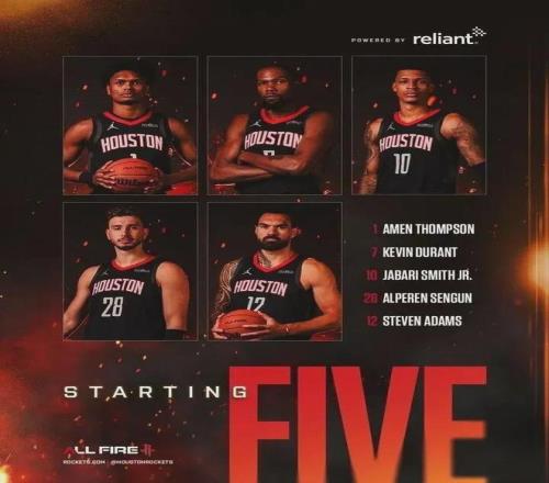 常规赛揭幕战火箭VS雷霆,火箭首发五虎为阿门+杜兰特+小史密斯+申京+亚当斯,平均身高2米09,此乃NBA史上最高首发阵容。